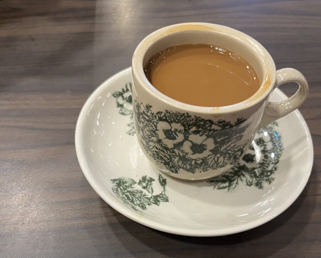 シンガポールの大衆食堂、『ホーカー』でホットコーヒーを頼むと入れられて出てくるコーヒーカップとソーサー。ホーカーで食事をした方なら、1度はこのカップでコーヒーを飲んだことがあるのではないでしょうか。